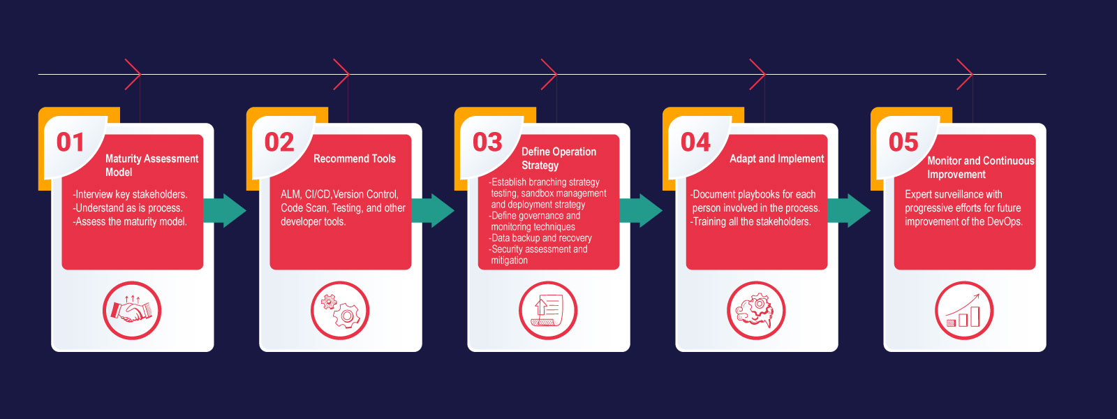 Our DevOps experts understand the importance of having a clear operation strategy for successful DevOps implementation and the following steps are involved in defining our operation strategy to efficiently implement your DevOps.